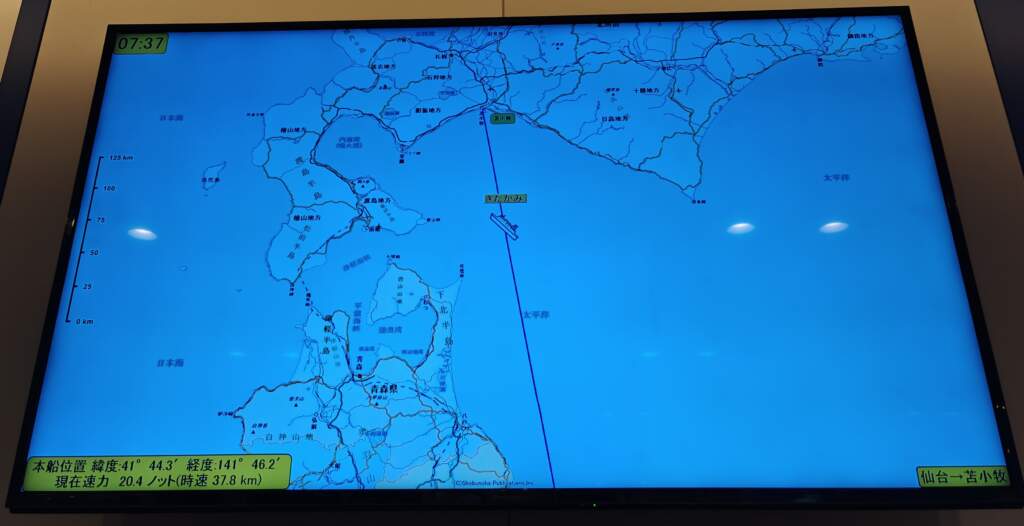 在大廳的即時螢幕上看到已經快到苫小牧(とまこまい)了