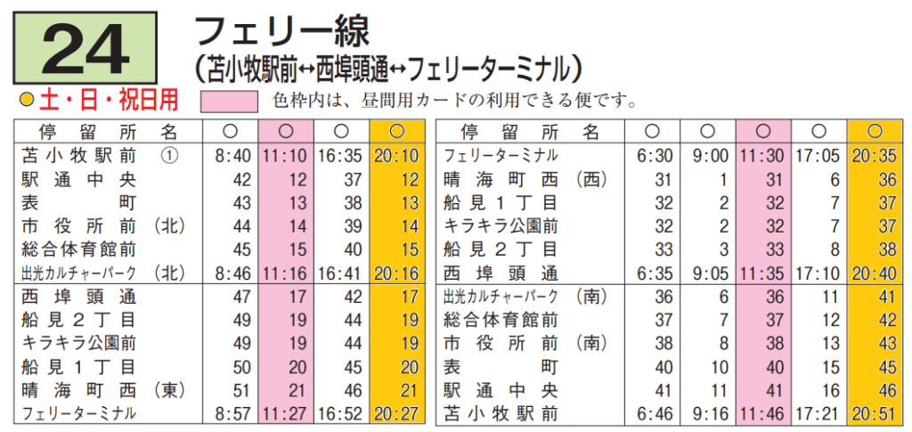 搭乘巴士 : フェリー線 苫小牧駅前(西埠頭通 経由),車次 : 24