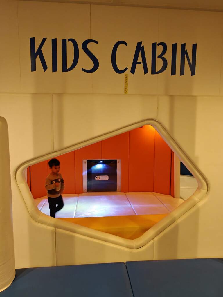 先不說因為新鮮他很開心~能自由走動、不受限制,想睡也能躺平睡,身為父母真的是輕鬆很多!!!!當然,也不是讓他自己到處亂跑亂撞,至少在自己的船艙內可以很自在。