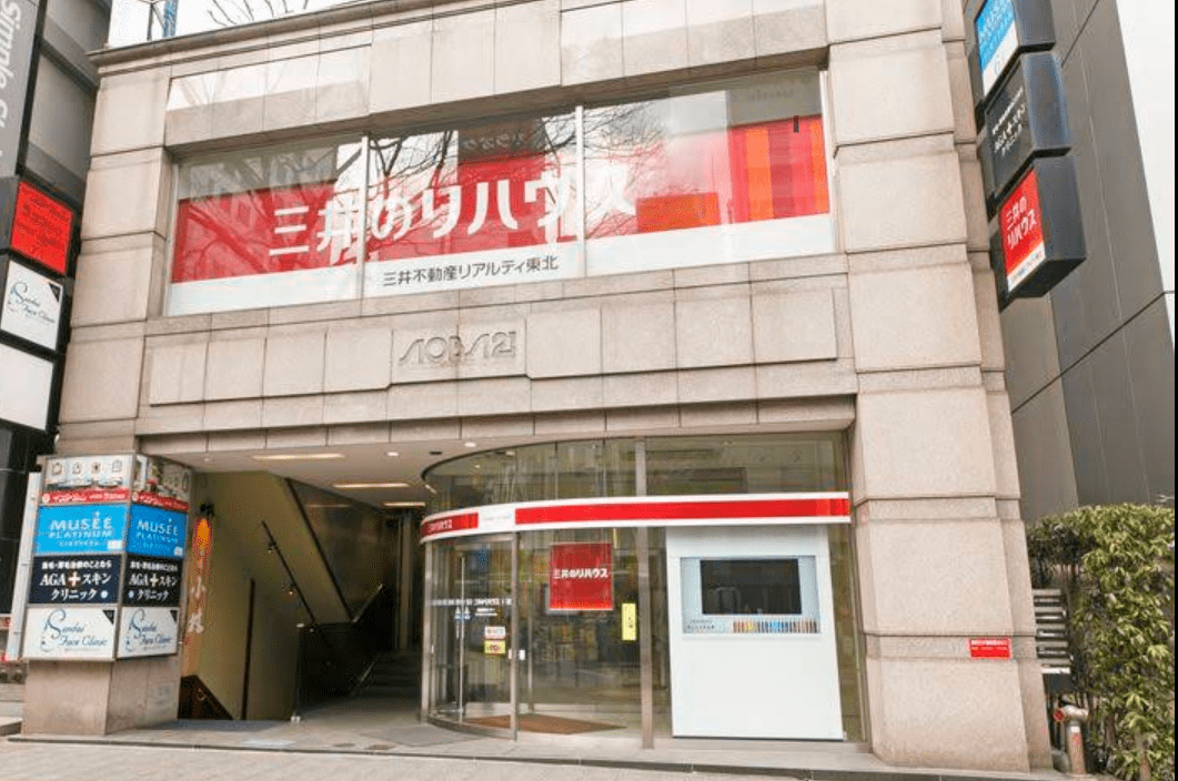 但要搭乘的巴士站不是在這裡,繼續往前走一個路口,過馬路到斜對面的人行道,公車站牌在”三井のリハウス 仙台駅前センター“的前方(↓認這個建築物,也是取自google map)