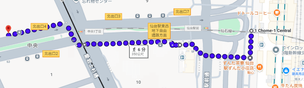 我這次行走的路線,從 JR仙台站 2F 的 西口駅前廣場出入口 開始走